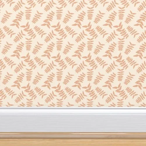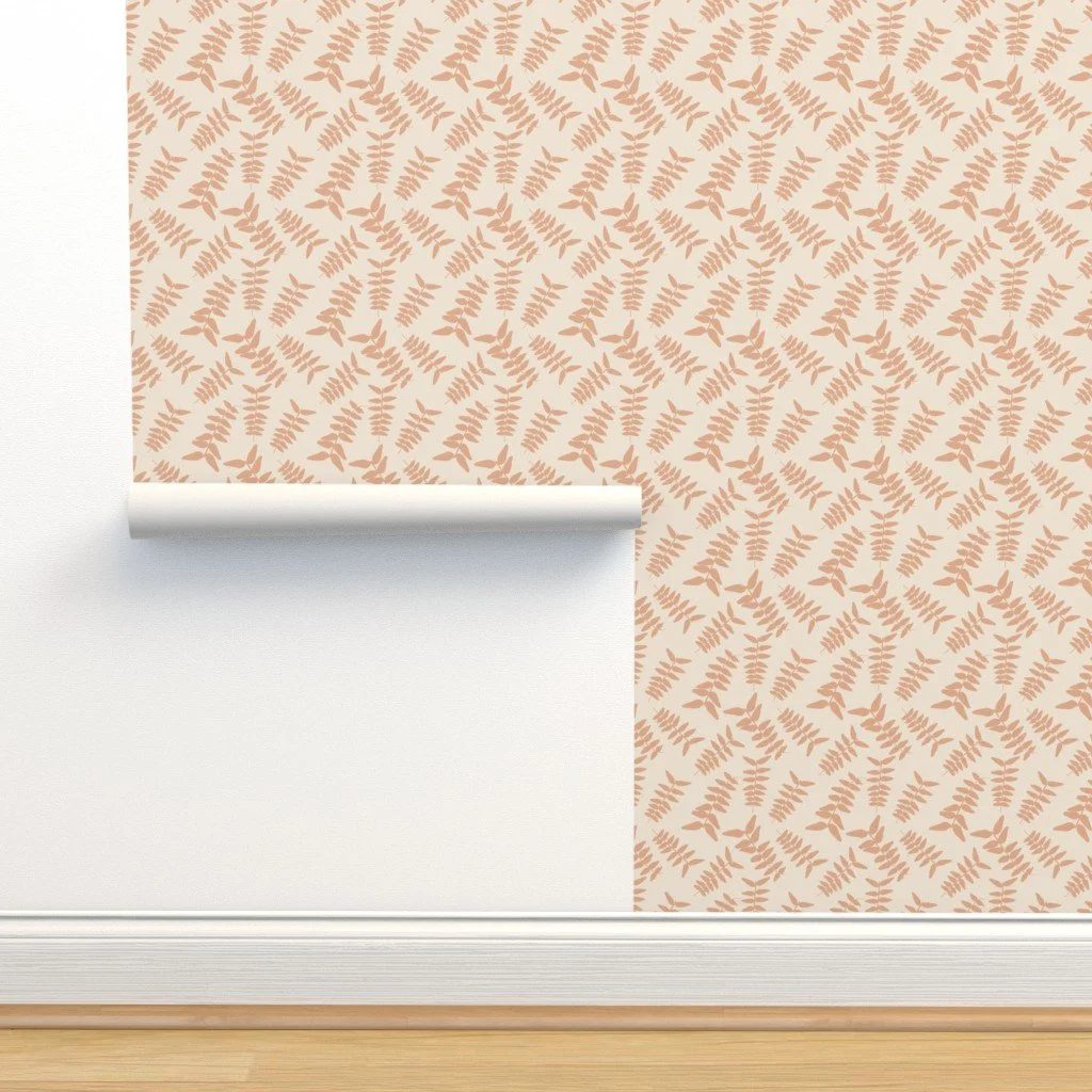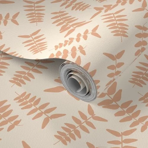 Dekorative skogsfunn i fritt fall med base i nydelig kremfarge og løv i lys dempet terracottafarge. Tapeten er lett å påføre og lett å fjerne, noe som gjør at den egner seg til mange prosjekter.